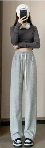Blue Korean Fresh Drape Effect High Waist Trouser Fashion Female Summer Baggy Wide Leg Pants Street Classic Women Sweatpants Y2k
