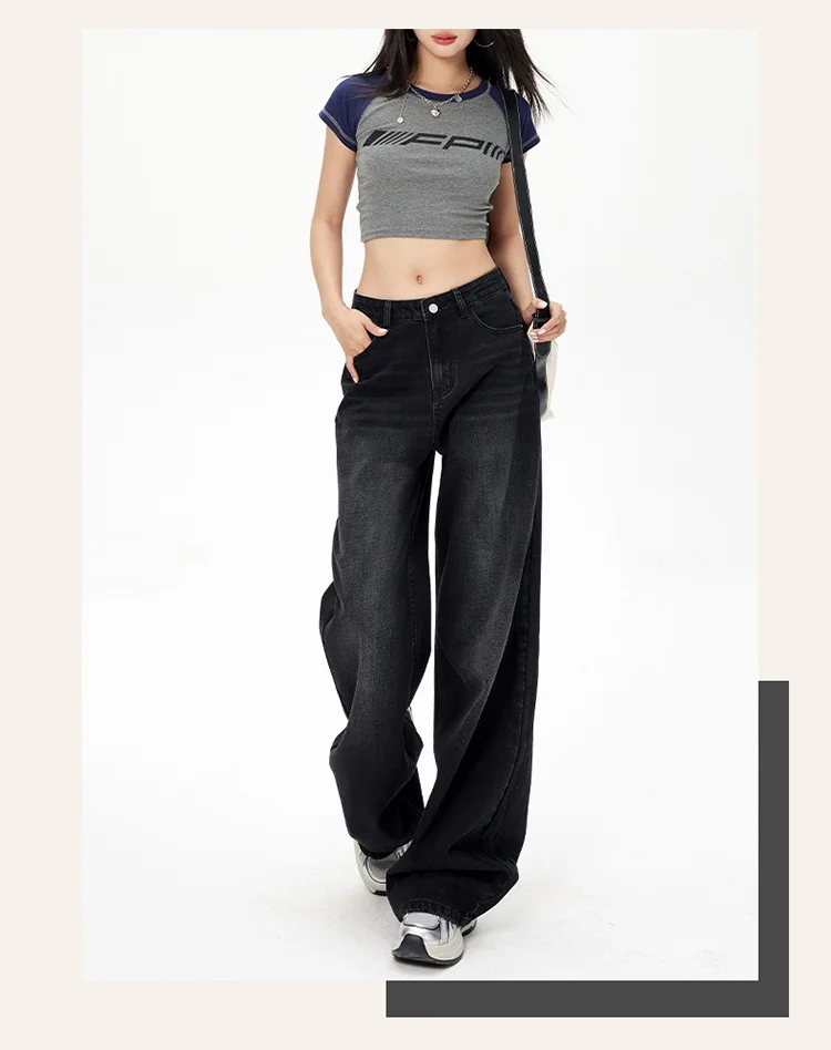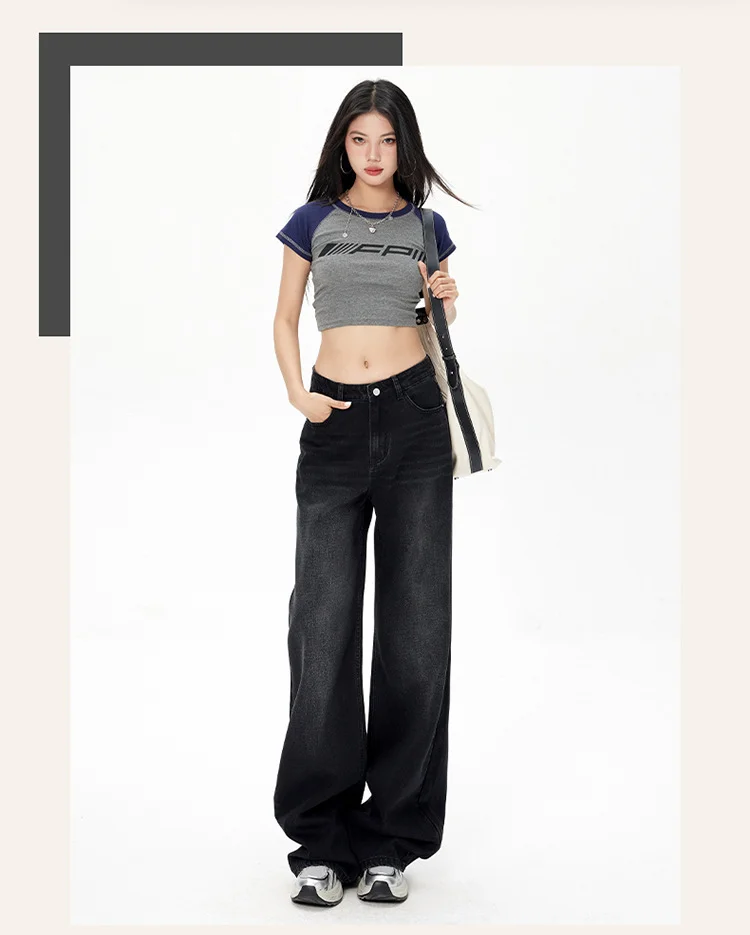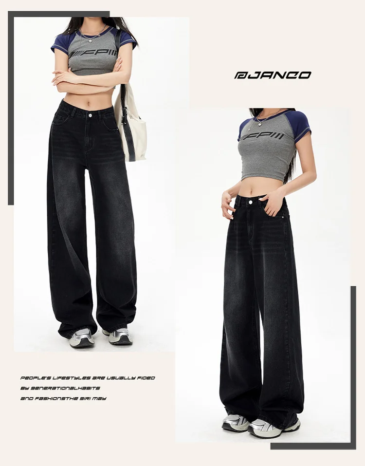 Lady RetroY2K Style High Waist Jeans Pants Women Fashion Straight Leg Denim Trousers Hot Girls Loose Fit Thin Casual Pants